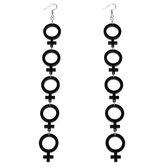Stora örhängen med tunna kvinnosymboler (venus) i akryl.